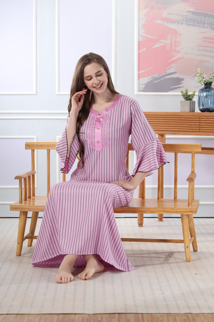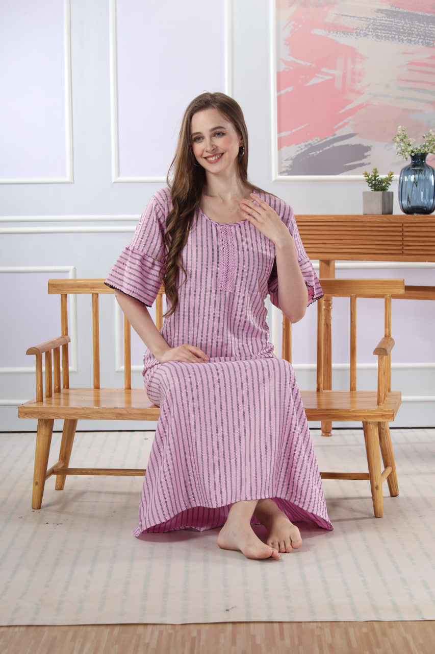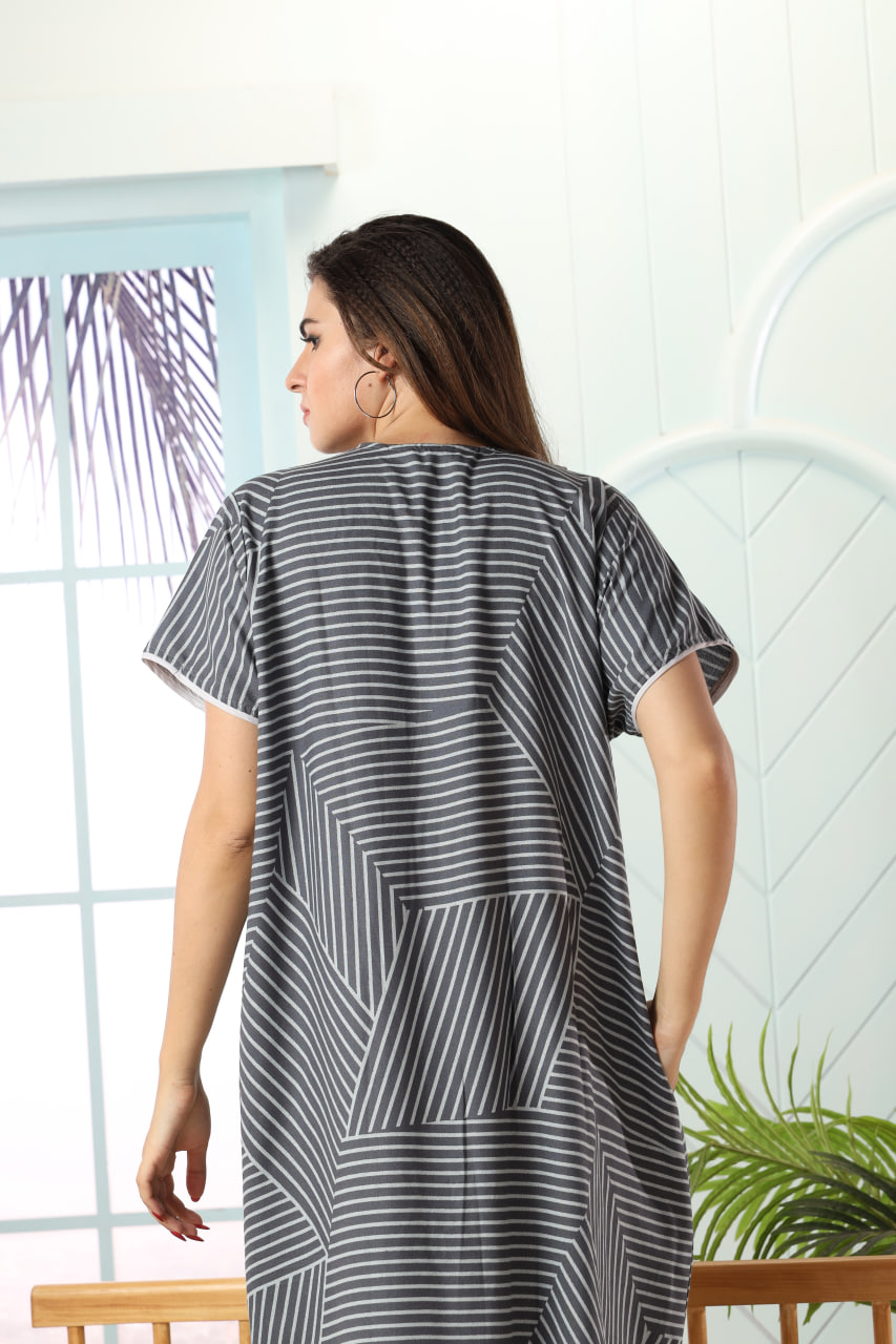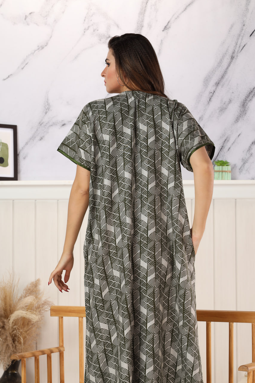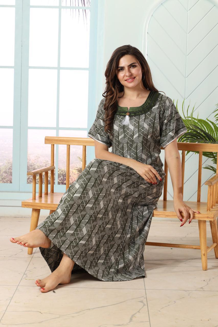 Elegant Stripes V-Neck Alpine Nightgown in Green