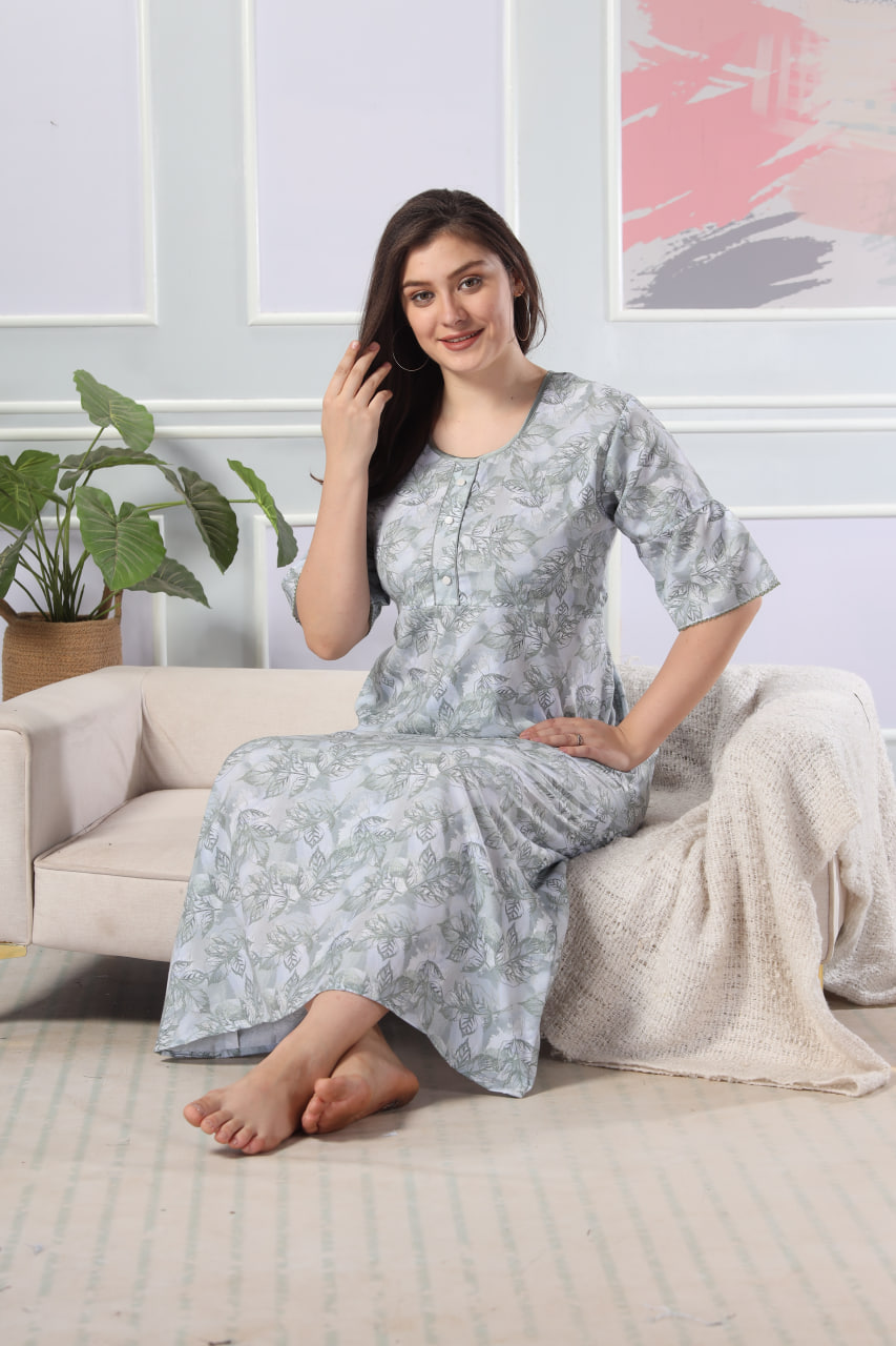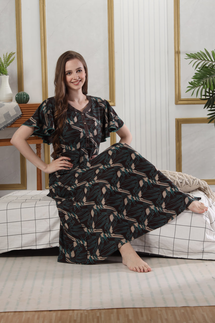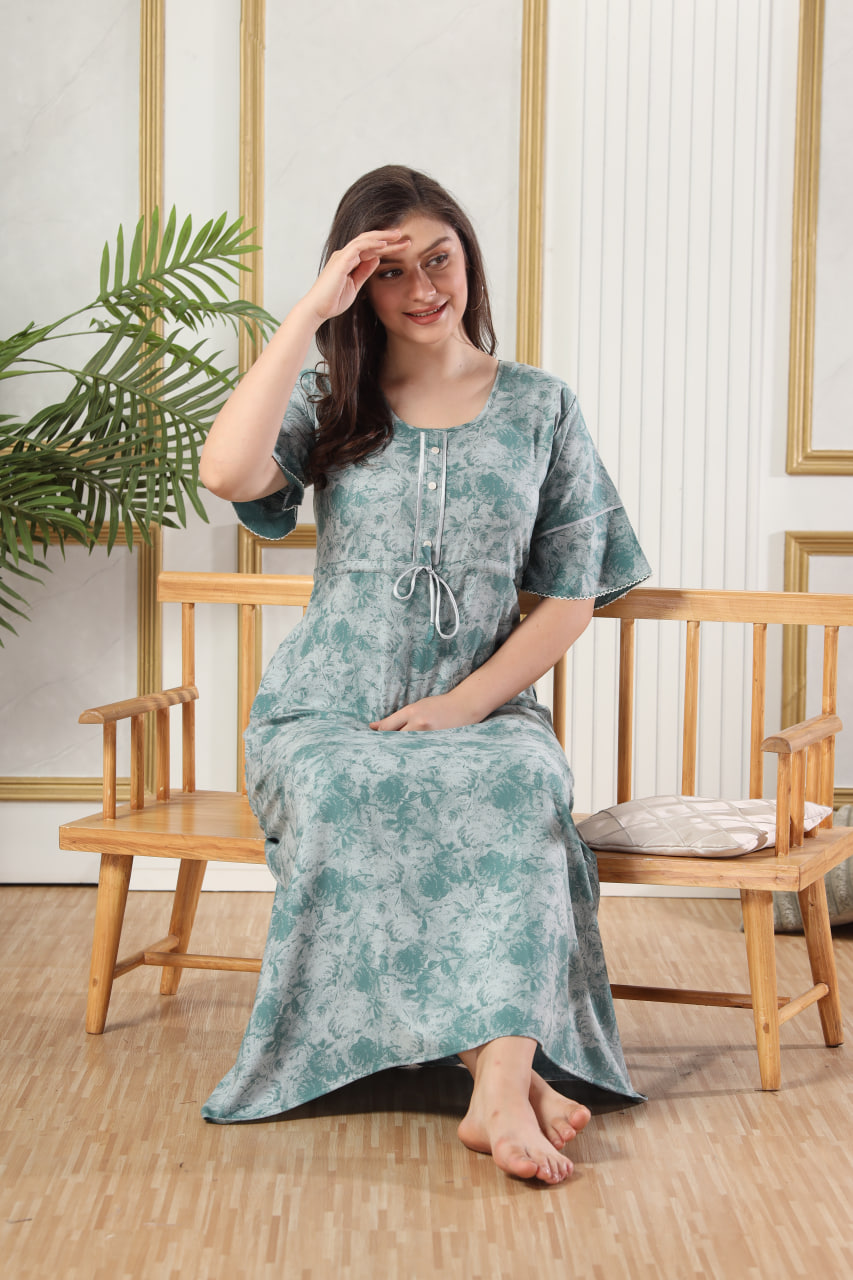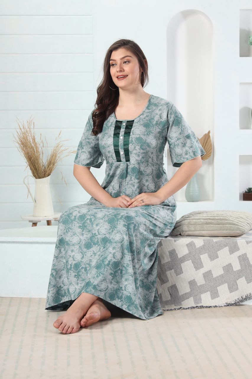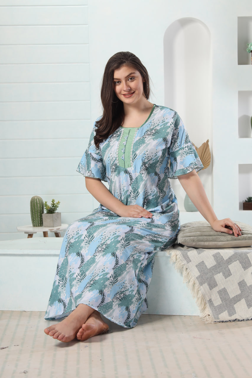Elegant Stripes V-Neck Alpine Nightgown in Green