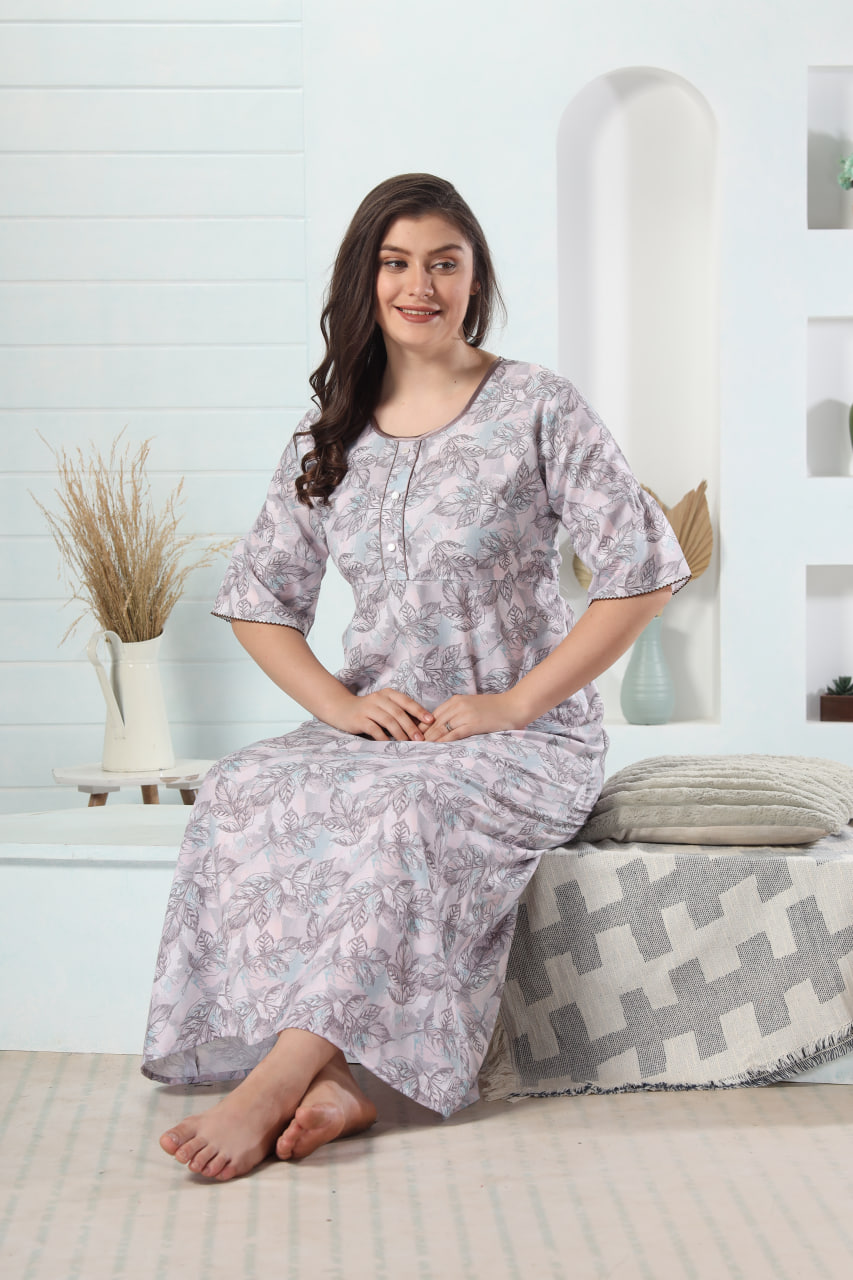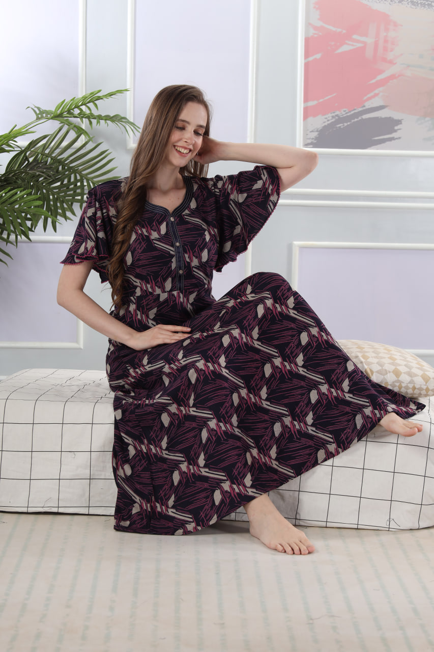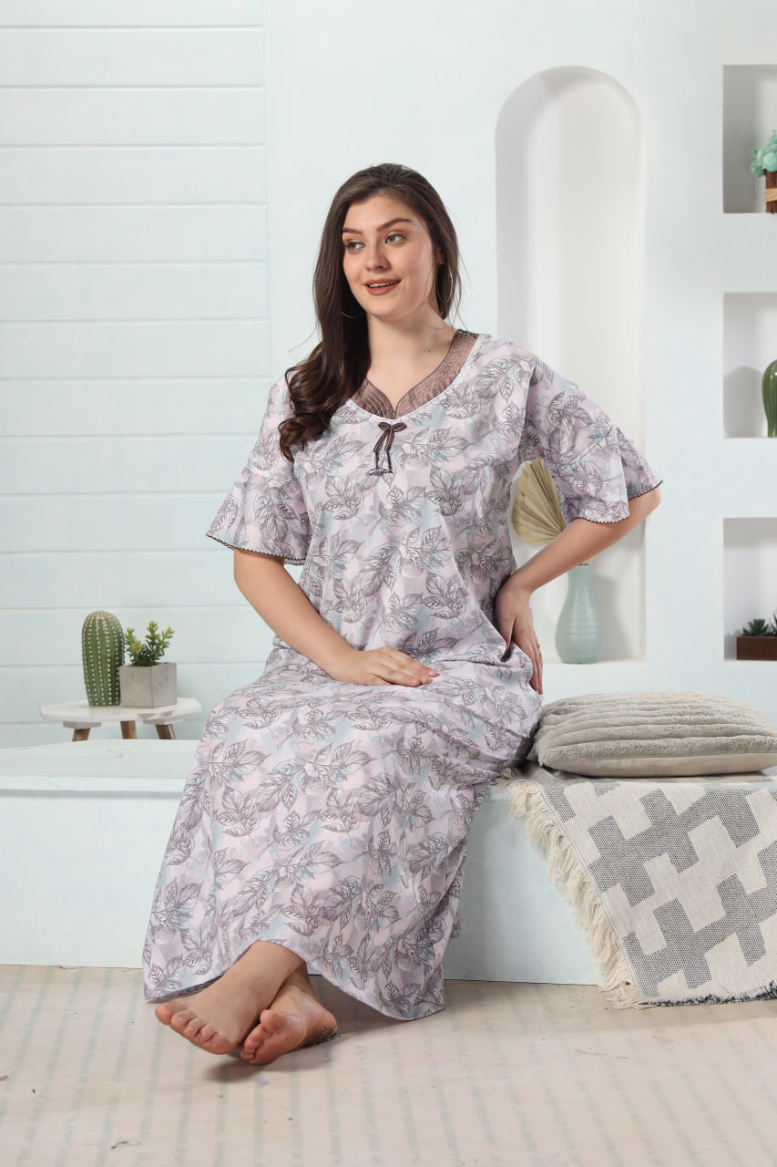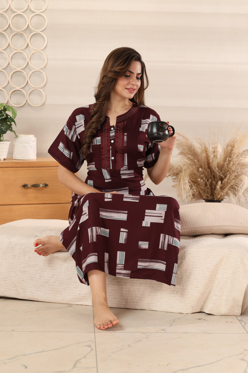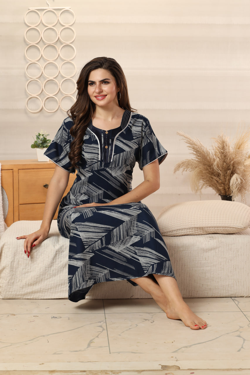 Elegant Stripes V-Neck Alpine Nightgown in Green