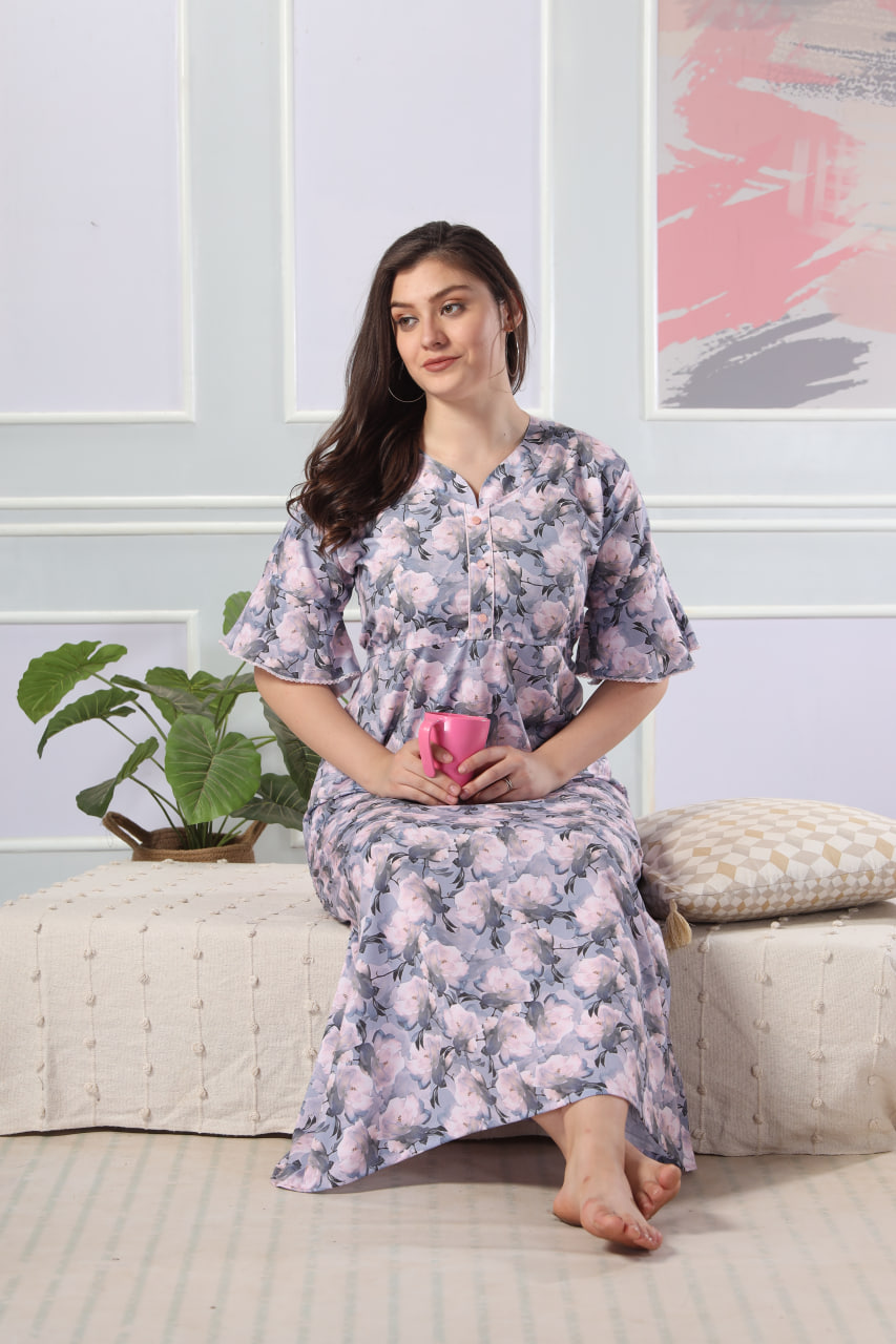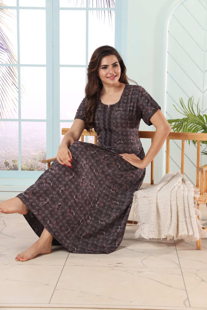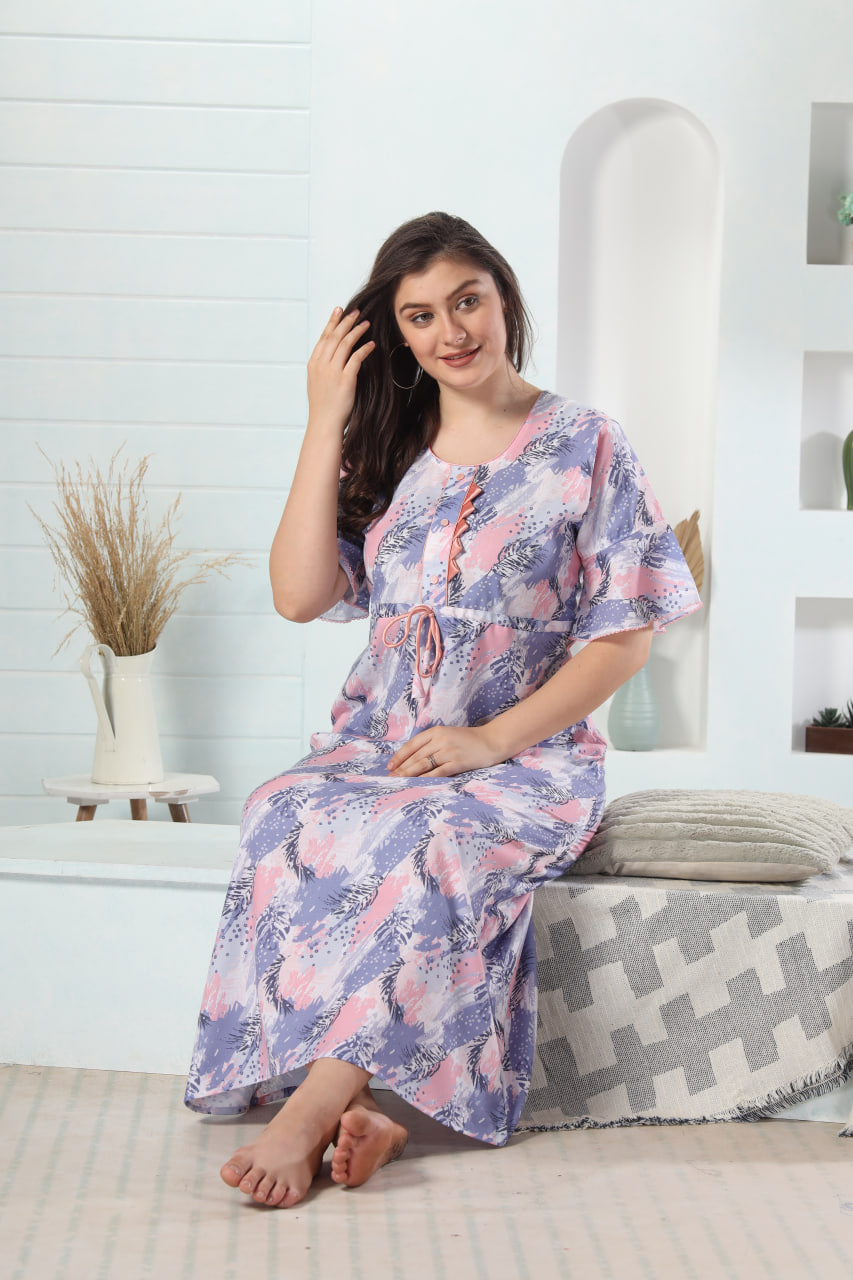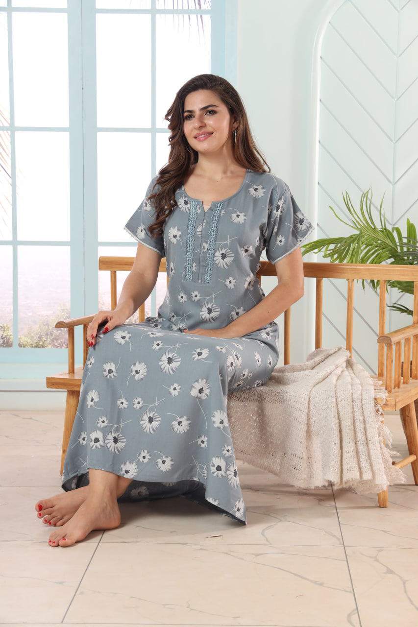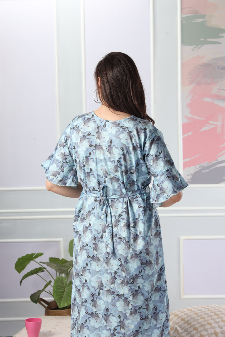 Elegant Stripes V-Neck Alpine Nightgown in Green
