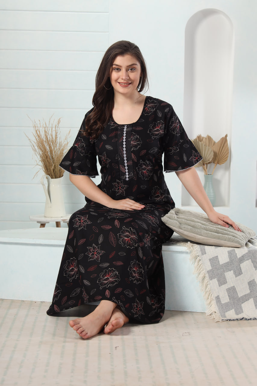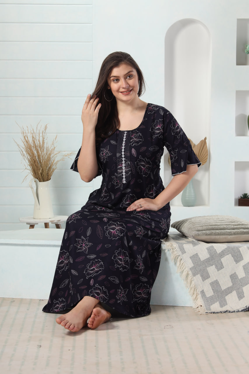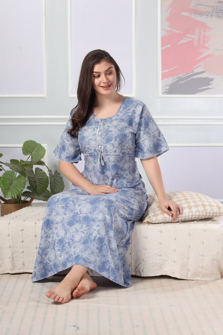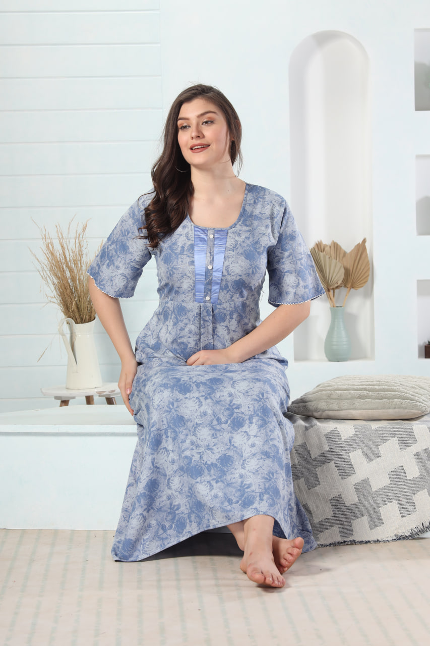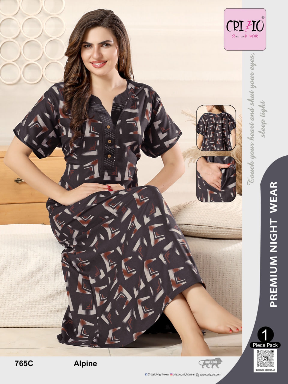 Elegant Stripes V-Neck Alpine Nightgown in Green